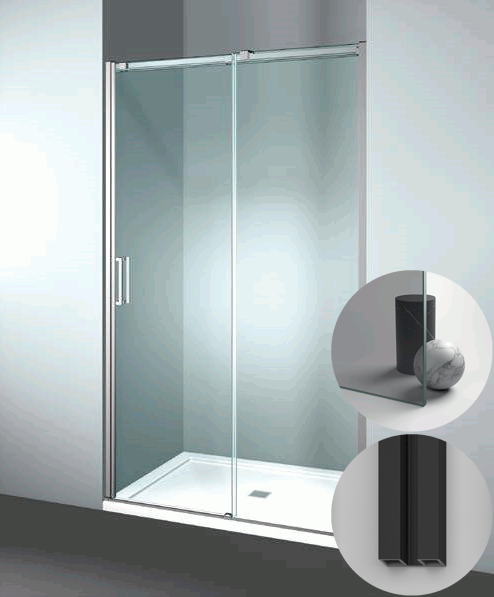 Box Doccia serie Gliss modello DN Destra, su misura al cm da 980 a 1070 mm, in Cristallo temperato finitura Grigio, montanti finitura Nero Opaco, compreso TPA