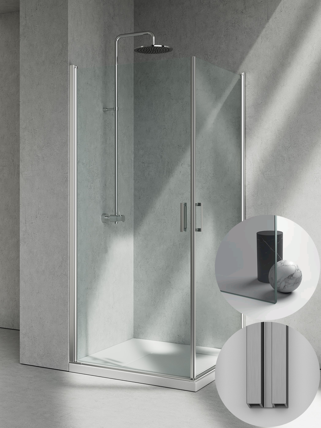 Box Doccia serie Linea modello LA Sinistra, su misura al cm da 880 a 990 mm, in Cristallo temperato finitura Grigio, montanti finitura Acciaio Spazzolato, compreso TPA