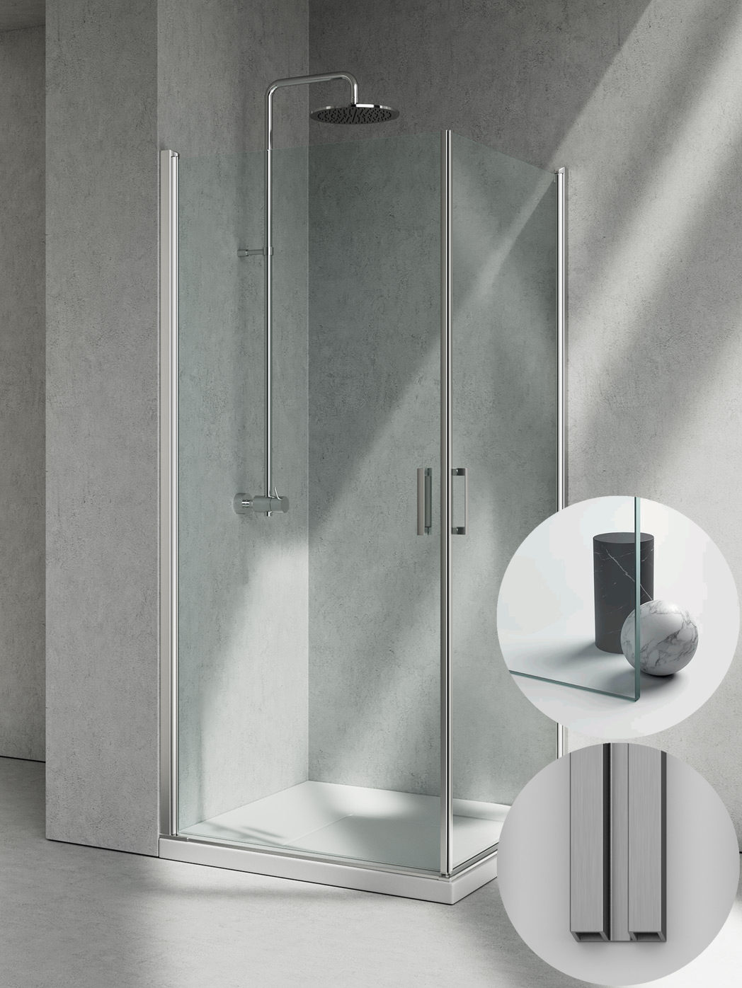 Box Doccia serie Linea modello LA Sinistra, su misura al cm da 880 a 990 mm, in Cristallo temperato finitura Trasparente, montanti finitura Acciaio Spazzolato, compreso TPA