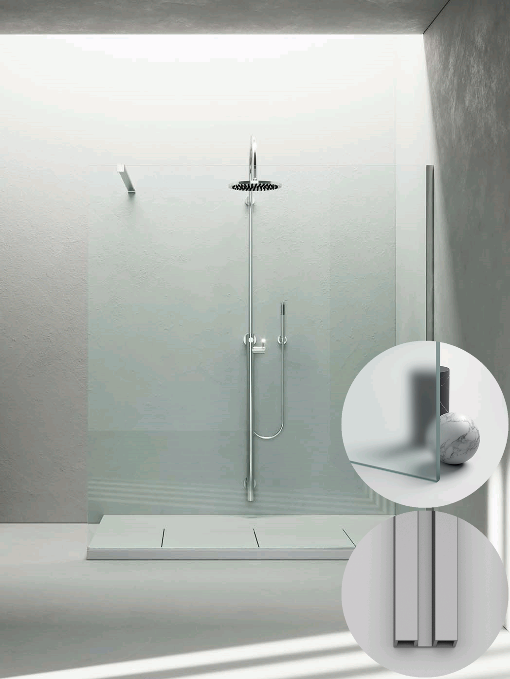 Box Doccia serie Sk_in modello SK Destra, su misura al cm da 980 a 1170 mm, in Cristallo temperato finitura Satinato, montanti finitura Argento Satinato, compreso TPA