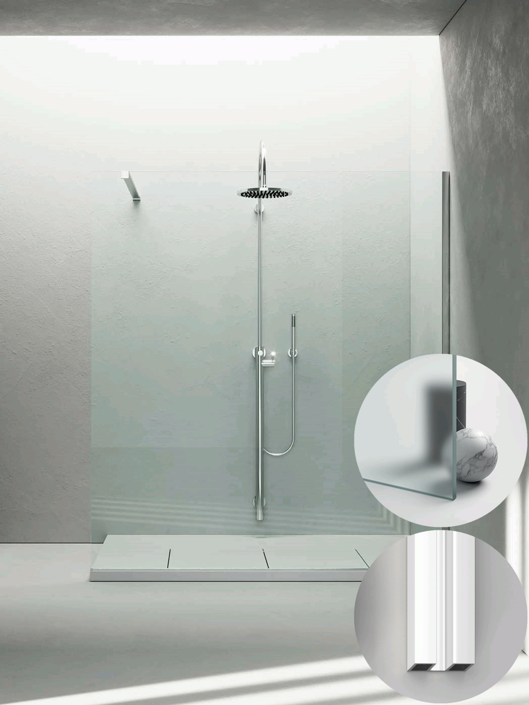 Box Doccia serie Sk_in modello SK Destra, su misura al cm da 980 a 1170 mm, in Cristallo temperato finitura Satinato, montanti finitura Bianco, compreso TPA