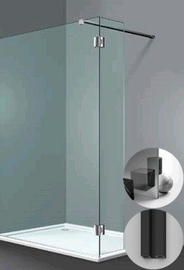 Box Doccia serie Sk_in modello SY Sinistra, su misura al cm da 150 a 500 mm, in Cristallo temperato finitura Riflettente, montanti finitura Nero Opaco, compreso TPA