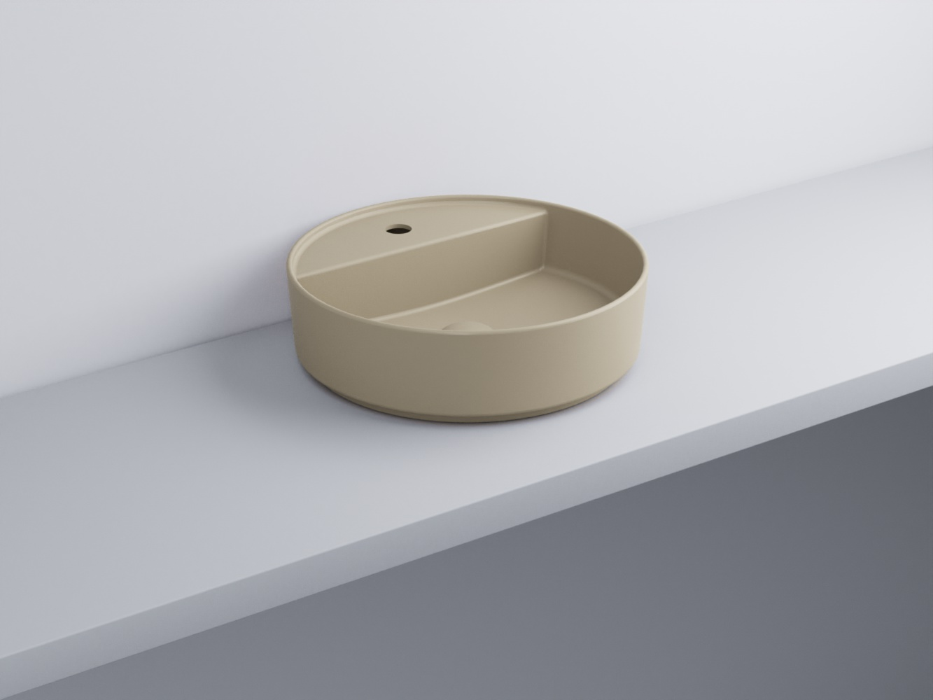 Ceramica Cielo – Shui Comfort – Lavabo da Appoggio Tondo Monoforo in Ceramica, Misura 45X45 cm, Altezza 13 cm, Color Avena – SHCOLATFAVENA