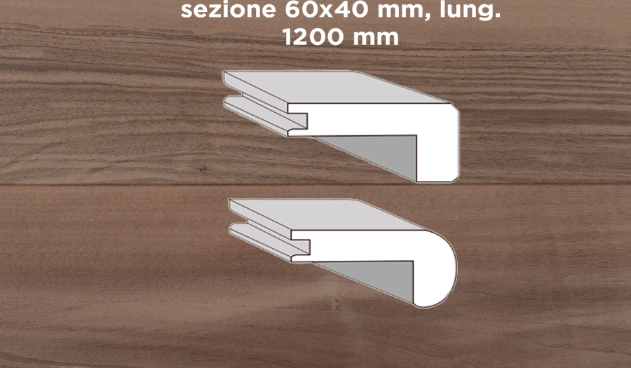 Unikolegno – Profilo scale angolo retto, essenza Noce Europeo Commerciale, finitura EVO spazzolato verniciato all’acqua, sezione 60×40 mm, lung. 1200 mm) – PRNOCSPEVLOFOSEH8