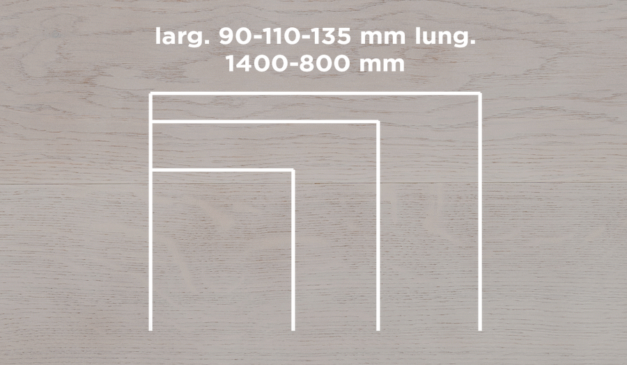 Unikolegno – Parquet Prefinito 2 strati, essenza Rovere Rustico TRIS, finitura tinto Pomice spazzolato verniciato all’acqua, spessore 11 mm, larg. 90-110-135 mm lung. 1400-800 mm (strato nobile 4 mm) – PRROVSPTITYP9R9FT