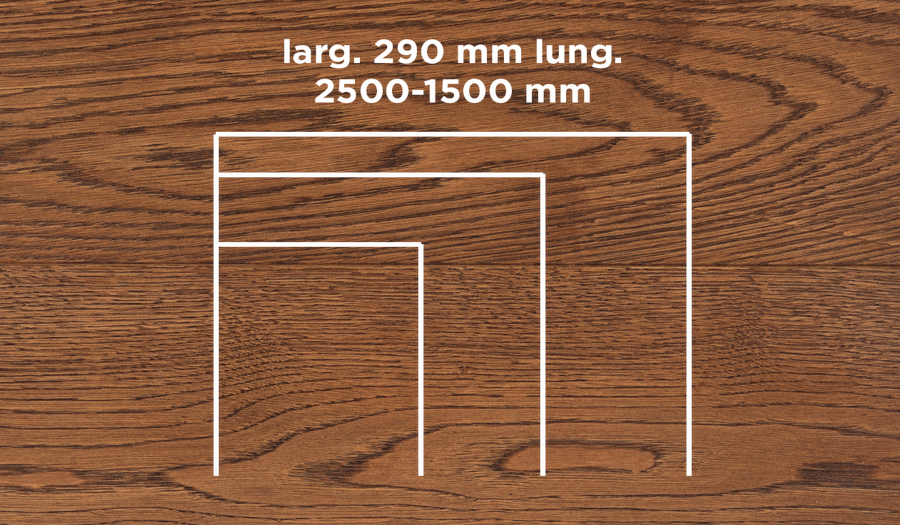 Unikolegno – Parquet Prefinito 3 strati, essenza Rovere Rustico LARGE, finitura tinto Tabacco spazzolato verniciato all’acqua, spessore 15 mm, larg. 290 mm lung. 2500-1500 mm (strato nobile 4 mm) – PRROVSPTISLIJGPY4