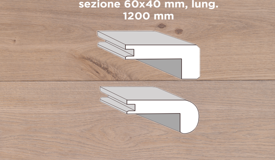 Unikolegno – Profilo scale angolo retto, essenza Rovere Commerciale, finitura decape Litio 2022 verniciato effetto olio, sezione 60×40 mm, lung. 1200 mm) – PRROVVEDESMAXCBCS