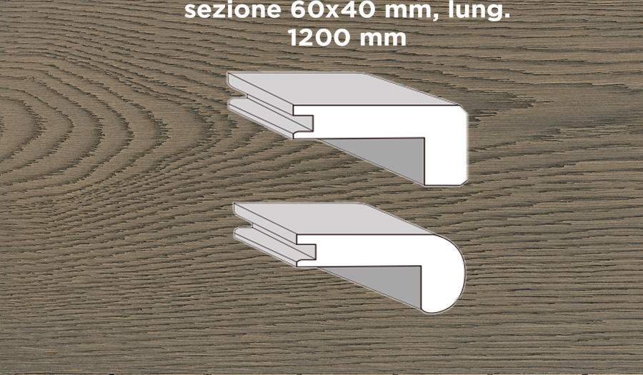 Unikolegno – Profilo scale angolo retto, essenza Rovere Soft, finitura tinto Lava spazzolato verniciato all’acqua, sezione 60×40 mm, lung. 1200 mm) – PRROVSPTILOFX15UH
