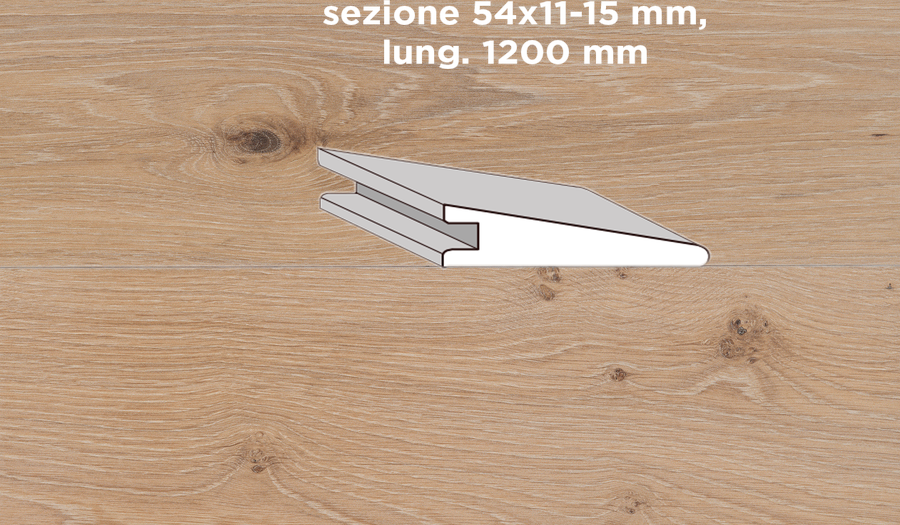 Unikolegno – Soglia di raccordo a scivolo, essenza Rovere Foresta, finitura decape Iridio 2022 spazzolato verniciato all’acqua, sezione 54×11-15 mm, lung. 1200 mm) – SOROVSPDETYP9Q3CD