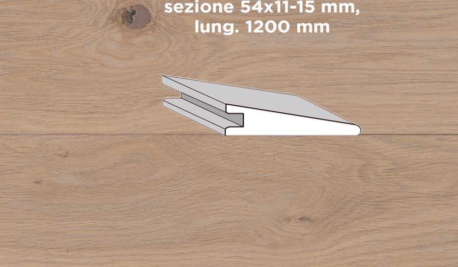 Unikolegno – Soglia di raccordo a scivolo, essenza Rovere Rustico, finitura decape Cromo 2022 spazzolato verniciato all’acqua, sezione 54×11-15 mm, lung. 1200 mm) – SOROVSPDESLIETFH6