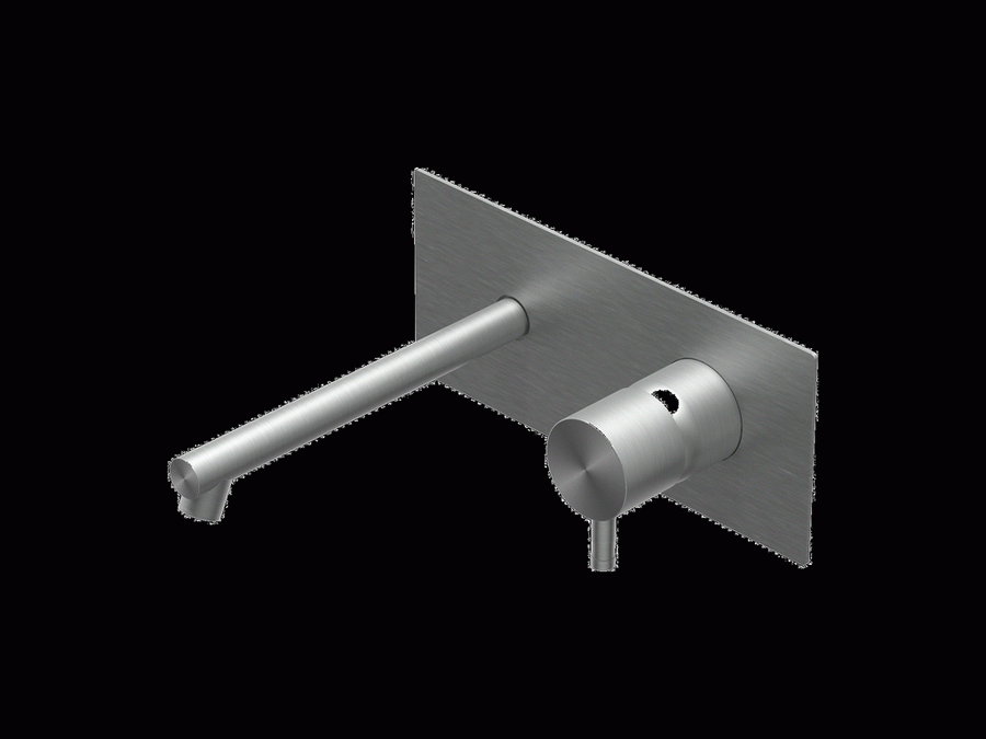 Diametro35 Inox – Miscelatore Monocomando a Parete con Piastra per Lavabo, Finitura Stainless Steel, Canna da 200 mm
