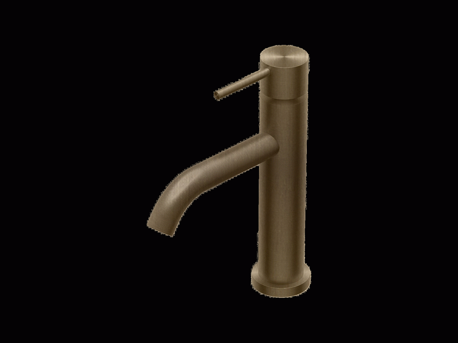 Diametro35 Inox – Miscelatore Monocomando con Leva Lunga in Appoggio senza Scarico per Lavabo, Finitura Champagne Stainless Steel, Canna da 126 mm, Altezza 192 mm