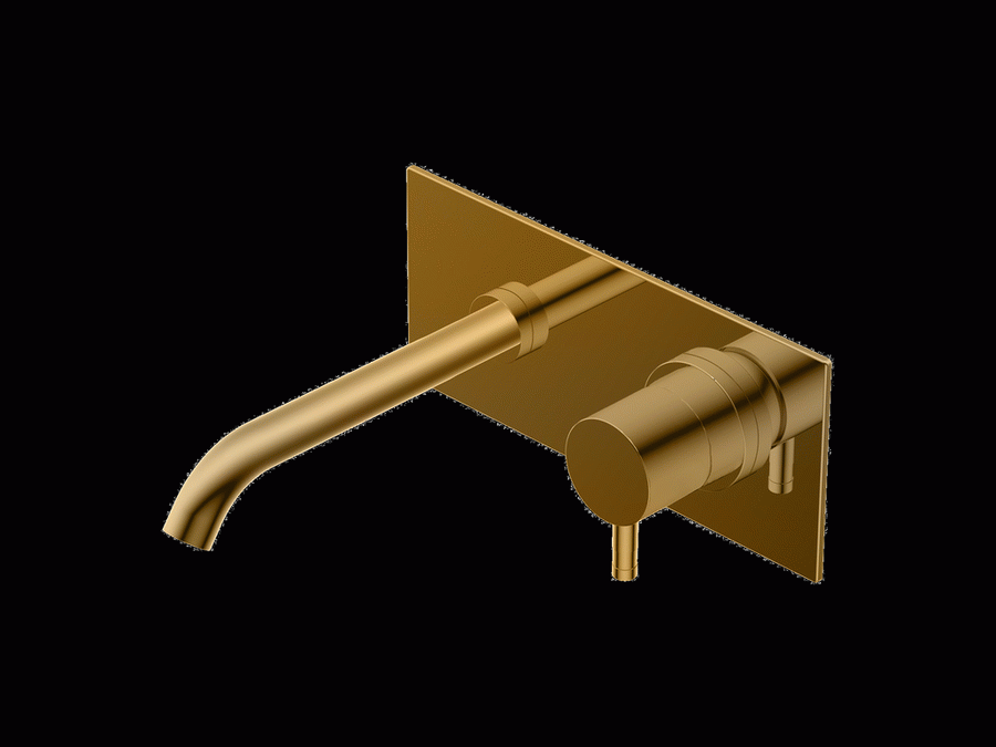Diametro35 – Miscelatore Monocomando a Parete con Piastra per Lavabo, Finitura Gold, Canna da 196 mm