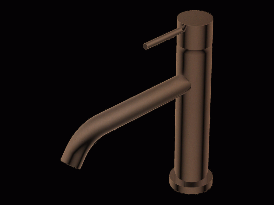 Diametro35 – Miscelatore Monocomando con Leva Lunga in Appoggio senza Scarico per Lavabo, Finitura Frosted Rose Gold, Canna da 166 mm, Altezza 192 mm