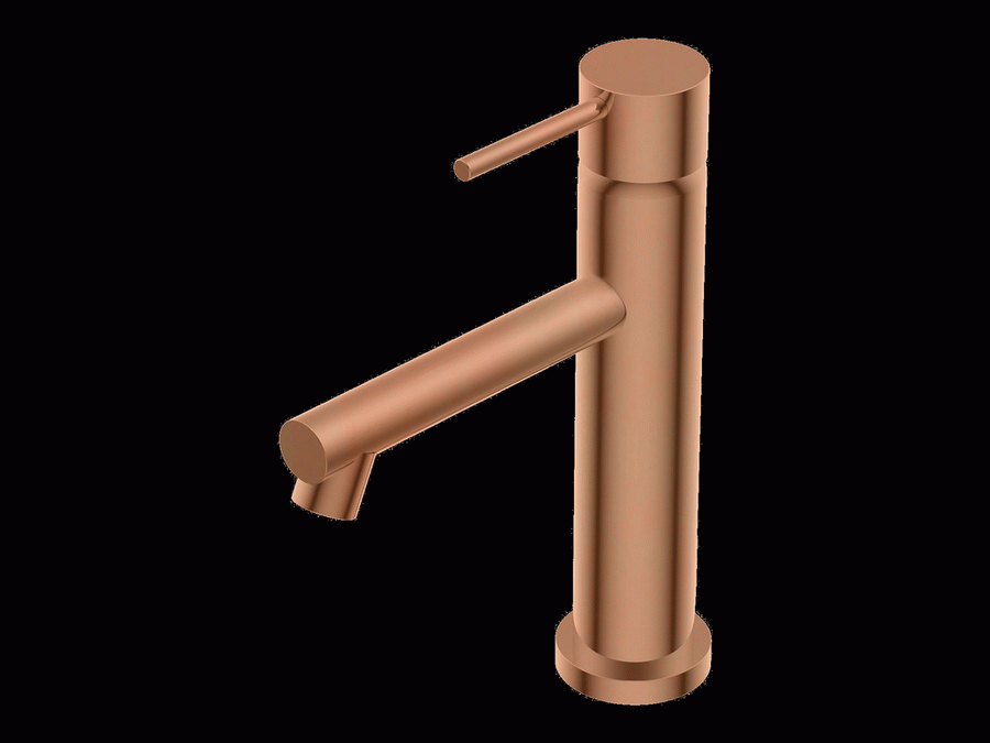Diametro35 – Miscelatore Monocomando con Leva Lunga in Appoggio senza Scarico per Lavabo, Finitura Rose Gold, Canna da 127 mm, Altezza 192 mm