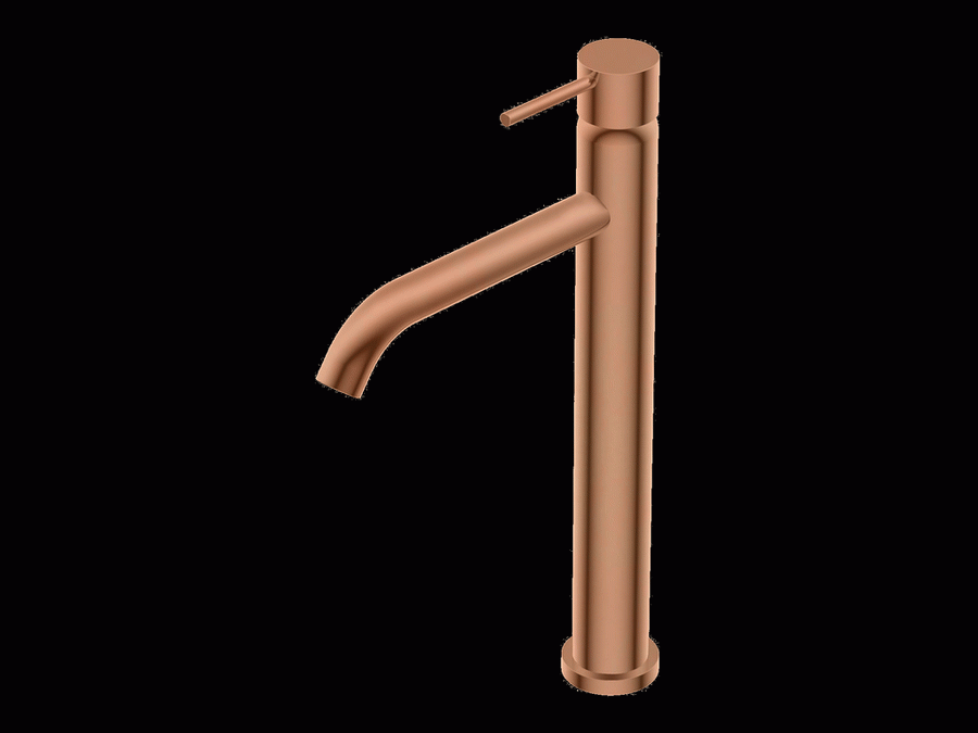 Diametro35 – Miscelatore Monocomando con Leva Lunga in Appoggio senza Scarico per Lavabo, Finitura Rose Gold, Canna da 166 mm, Altezza 311 mm