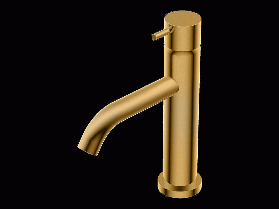 Diametro35 – Miscelatore Monocomando in Appoggio con Scarico per Lavabo, Finitura Gold, Canna da 126 mm, Altezza 192 mm