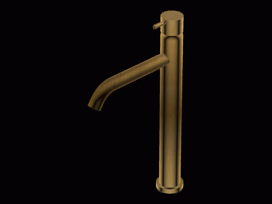 Diametro35 – Miscelatore Monocomando in Appoggio senza Scarico per Lavabo, Finitura Brushed Gold, Canna da 166 mm, Altezza 311 mm