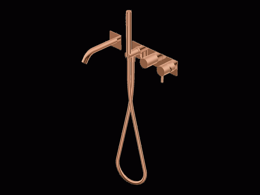 Diametro35 S – Miscelatore Monocomando a Parete con Deviatore con Piastra per Vasca, Finitura Rose Gold, Canna da 200 mm