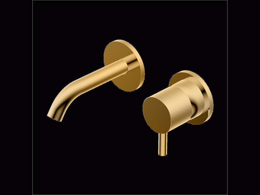 Diametro35 S – Miscelatore Monocomando a Parete senza Piastra per Lavabo, Finitura Gold, Canna da 133 mm